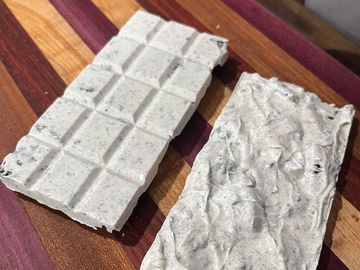 White Chocolate layered with crushed Candy Canes and Heavily Drizzled with Dark Chocolate