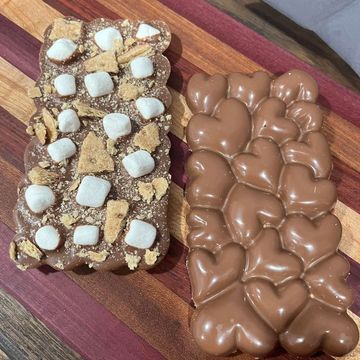 Milk Chocolate topped with Mini Marshmallows and Graham Cracker pieces