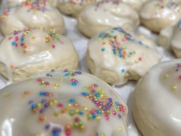 A not-too-sweet cookie with a hint of lemon zest topped with a sweet lemon glaze and rainbow nonpareils